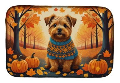 Norfolk Terrier Fall Dish Drying Mat Absorbent Dish Drying Mat Pad for Kitchen Counter Dish Drainer Mat for Countertop, 14 x 21", Multicolor